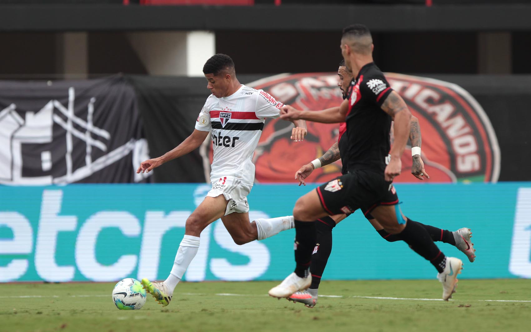 Arboleda, por exemplo, desperdiçou tento certo. Na resposta, Janderson cruzou ao invés de chutar e perdeu ótima oportunidade. Saíram Igor Gomes (Tchê Tchê) e Brenner (Pablo). Juanfran levou bolada na cara e veio Igor Vinícius. Na sequência, Wellington Rato mandou para as nuvens gol certo. À essas alturas do campeonato, equipe do Diniz estava no “lucro”.